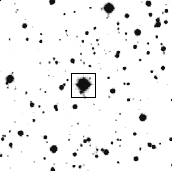 North at top and west on the right. Image 5x5 arcminutes. Epoch of chart is 1952.7.